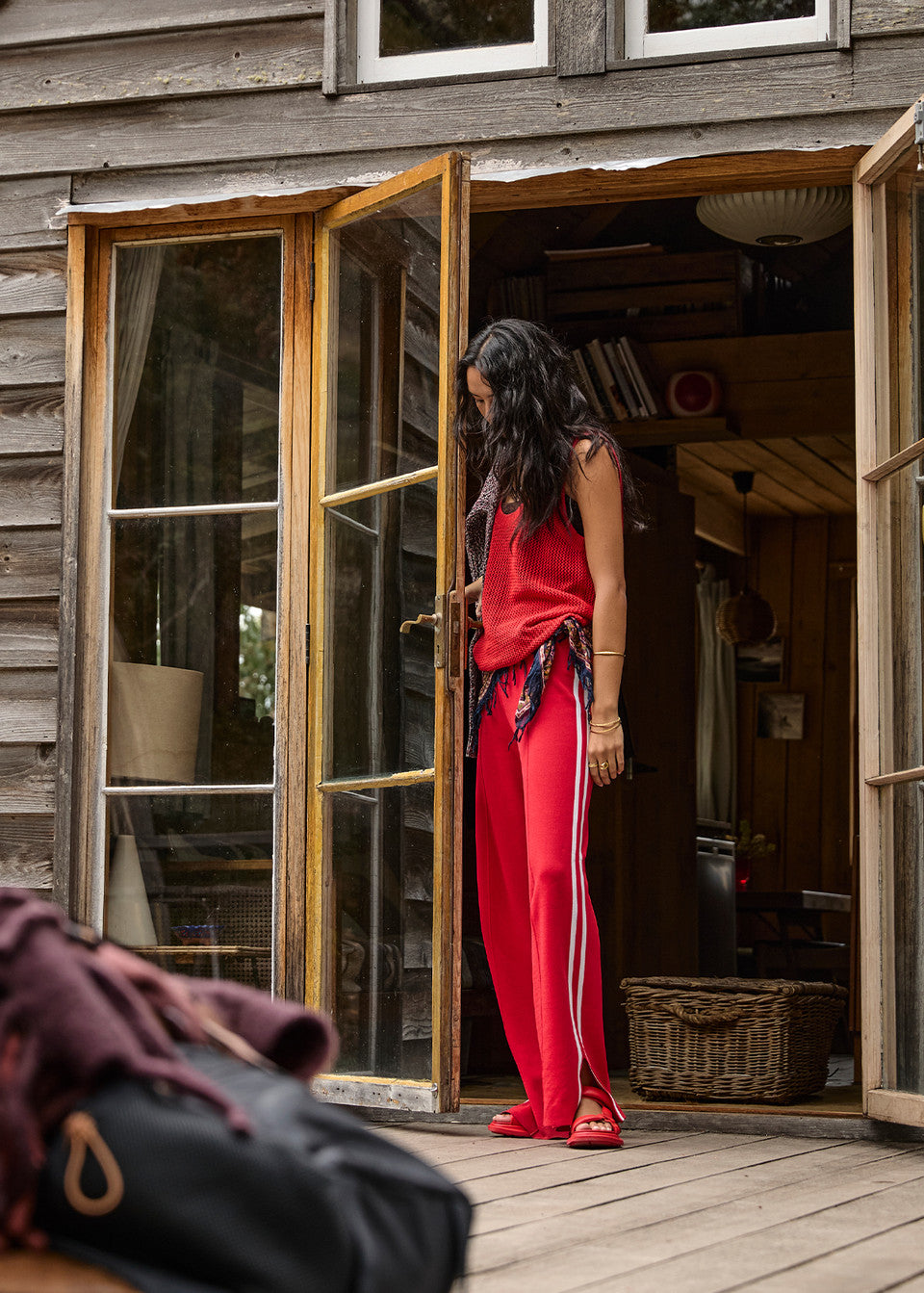 • Knitted straight leg pant in roja red