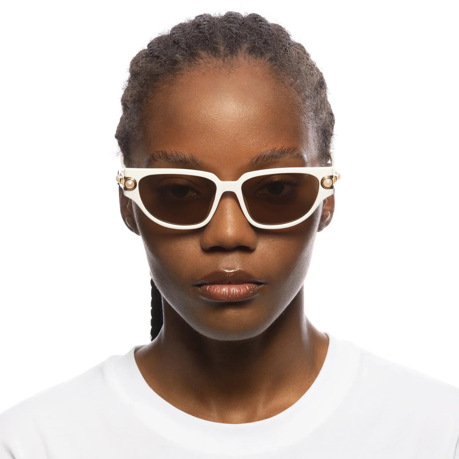 • Finished in an ivory frame with ochre mono lenses.